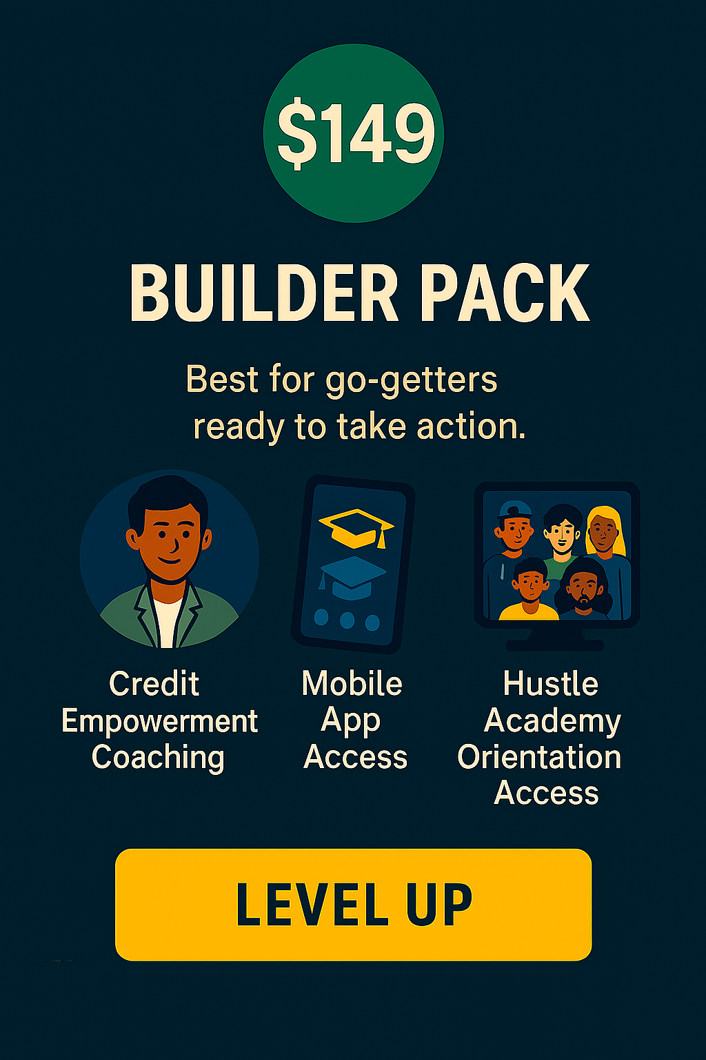 The Hustle Academy Workshops are hands-on, high-impact sessions designed to teach young adults how to use credit as a tool to fund their dreams, build real businesses, and achieve financial freedom. Whether you're launching a side hustle, scaling a brand, or just getting started, these workshops give you step-by-step blueprints, live coaching, and actionable strategies you won’t find in school.